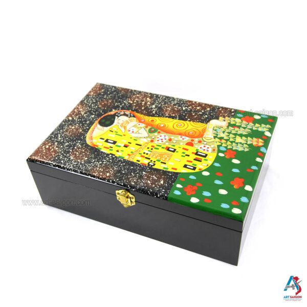 Boite à Bijoux en Bois Laqué – Motif “Le Baiser” de Gustav Klimt (L30cm)(réf. S59-9226)Disponibilité : 1 en stock