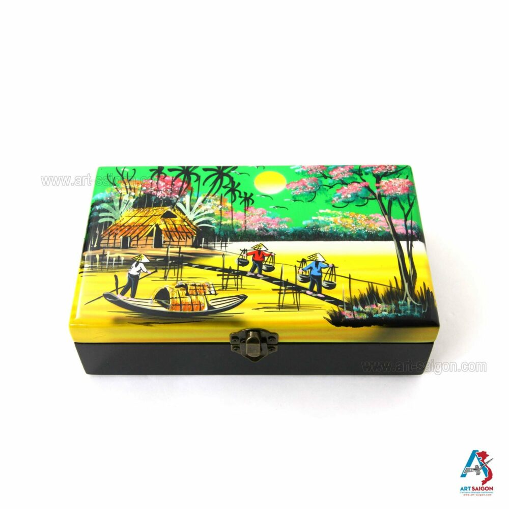 Boite à Bijoux en Bois Laqué Peint - La Campagne du Vietnam (L20cm)(réf. S59-8896)Boite à Bijoux en Bois Laqué Peint – La Campagne du Vietnam (L20cm)(réf. S59-8896)