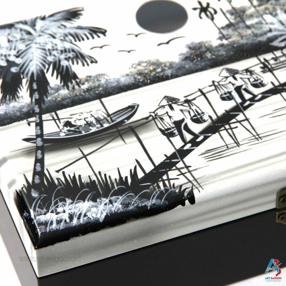 Boite à Bijoux en Bois Laqué Peint – La Campagne du Vietnam