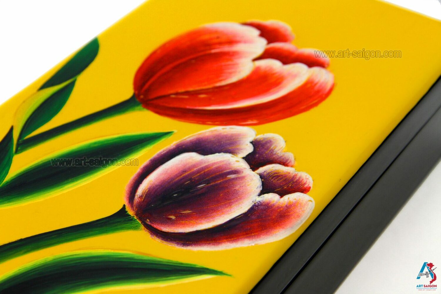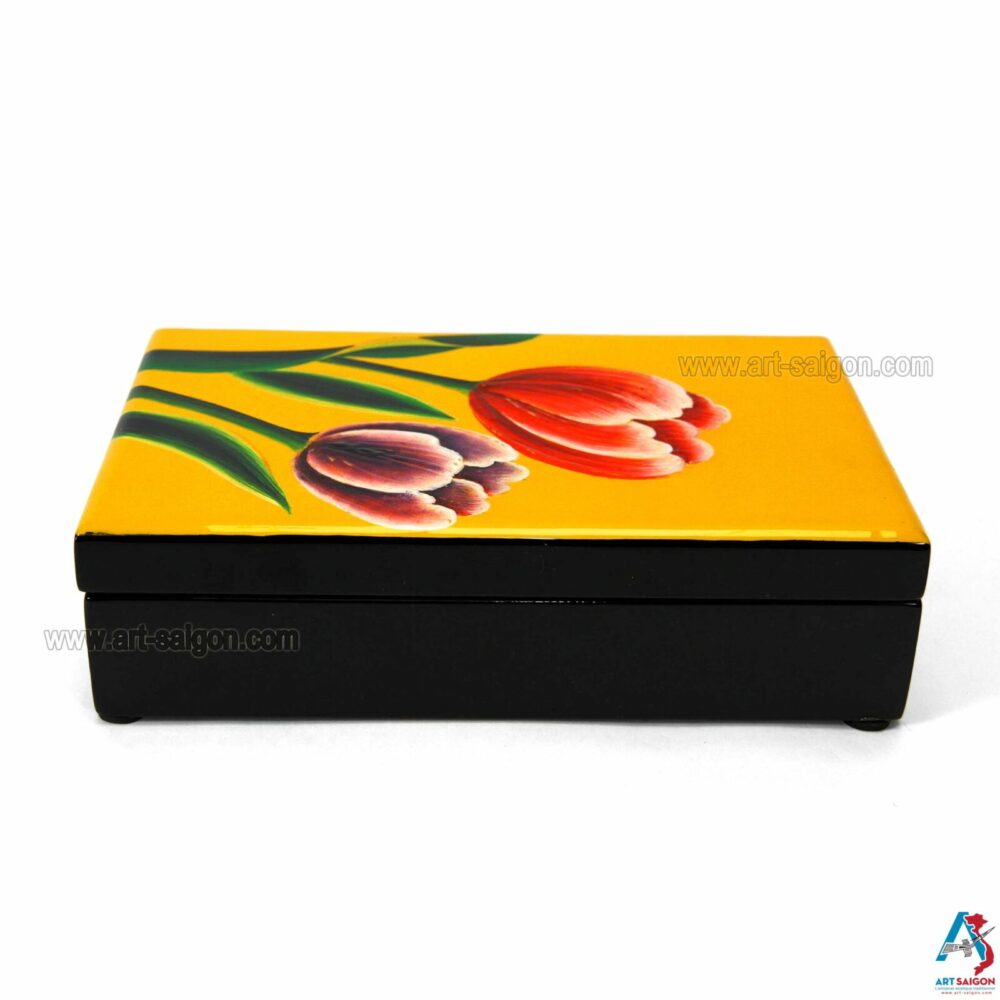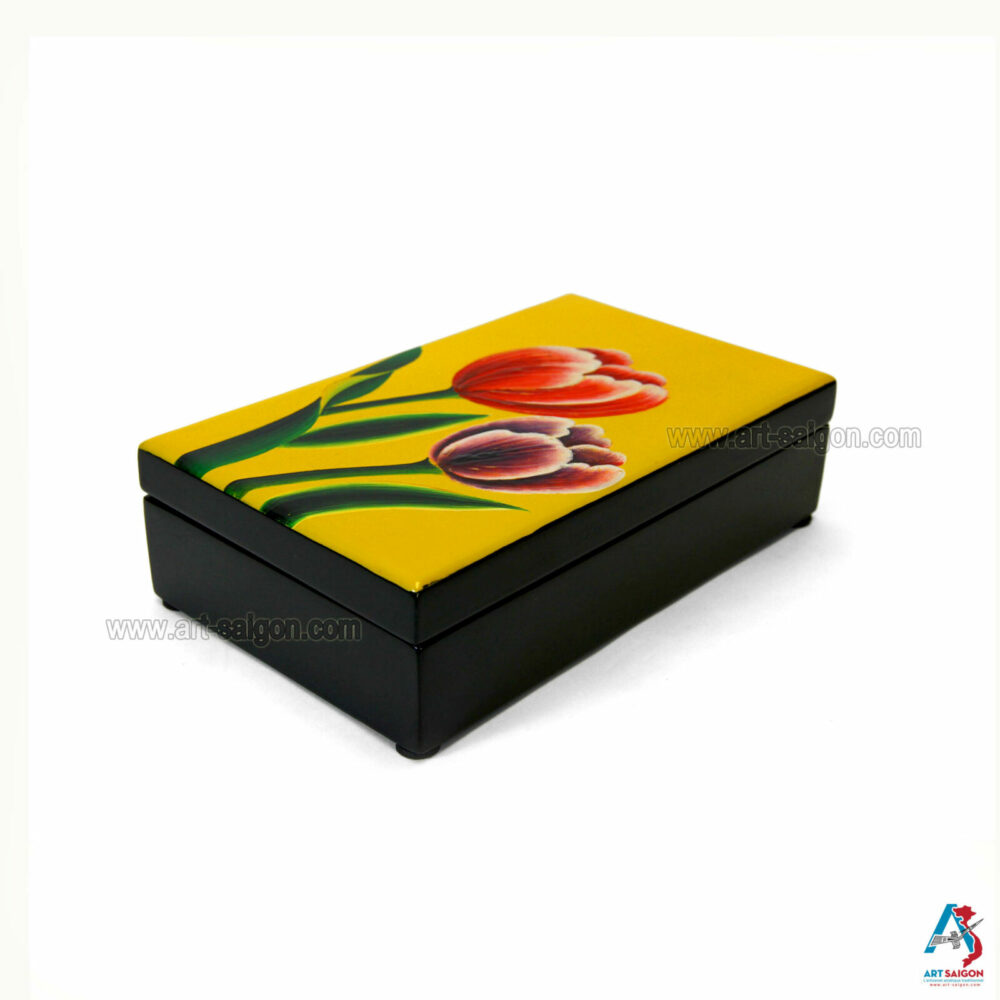 Boite Bijoux en Bois Laqué - Motif Fleur Tulipe. Décoration et Artisanat du Vietnam. Article vendu par la Boutique Art-saigon.comBoite à Bijoux en Bois Laqué Peint – Motif Fleur de Tulipe (L20cm)(réf. S54-8113)