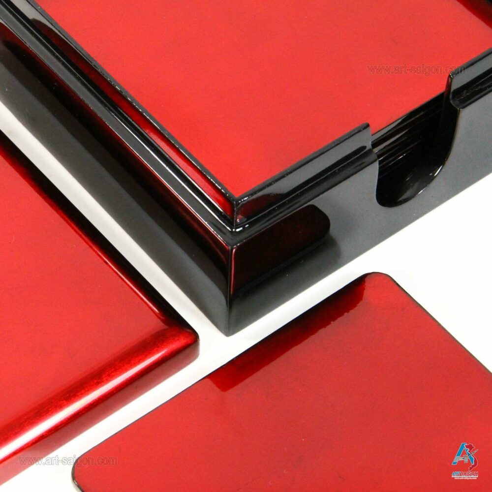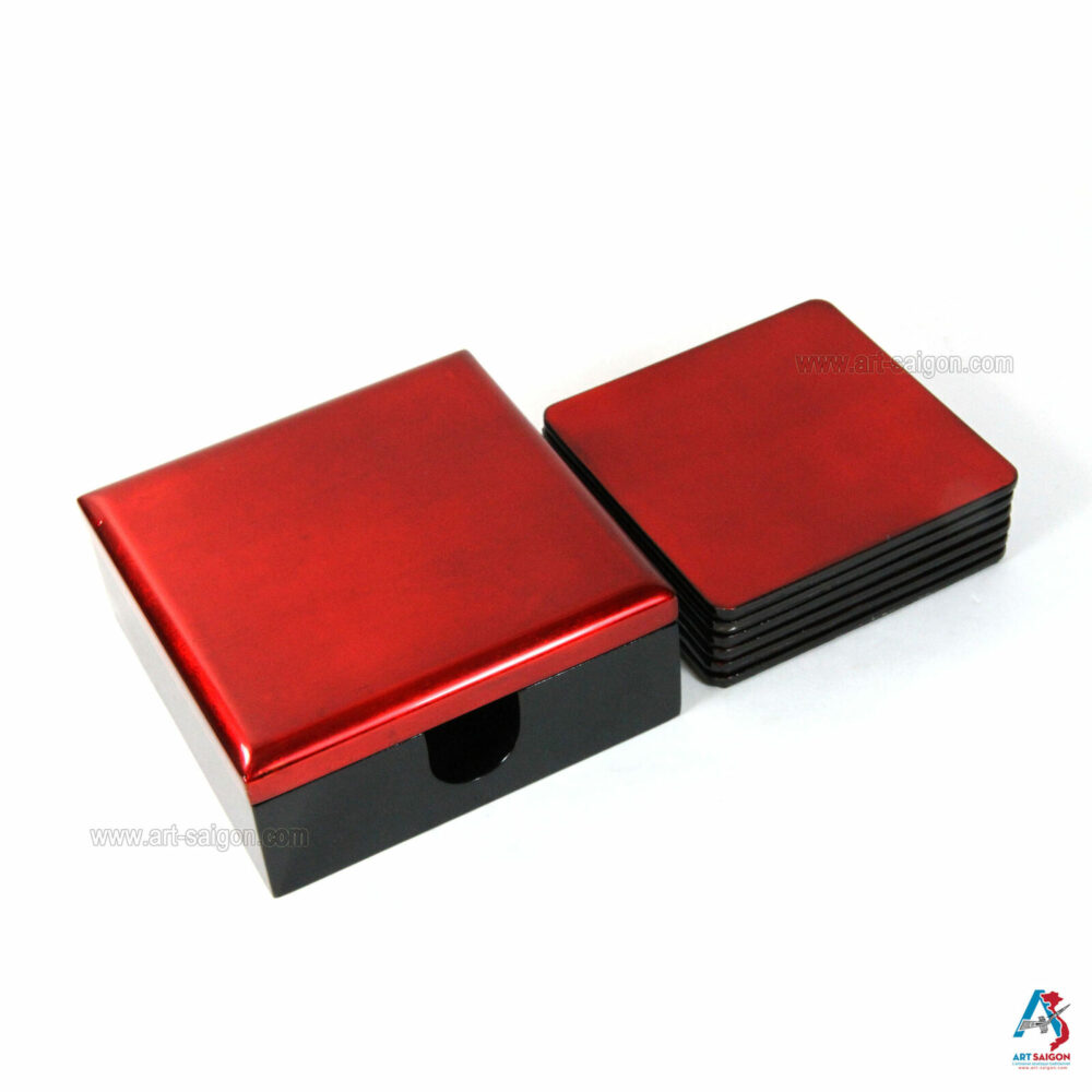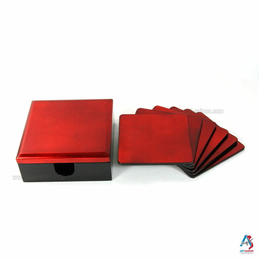 Boite de 6 Sous-Verres en Bois Laqué Rouge – Motif Uni (Réf. S64-0745)Disponibilité : 2 en stock