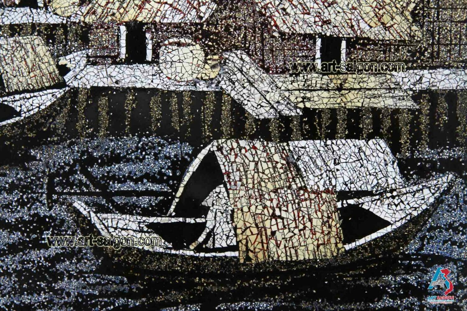 Ce joli tableau est fabriqué en bois laqué avec une couleur à dominante bleu clair. Ainsi, il représente une scène de la campagne du Vietnam avec ses paysans et son paysage peint à la main. De plus, ce tableau est fait entièrement avec des petites coquilles d’œuf cassées qui sont collées une par une. Enfin, il est fait entièrement à la main avec des techniques traditionnelles d’autrefois.