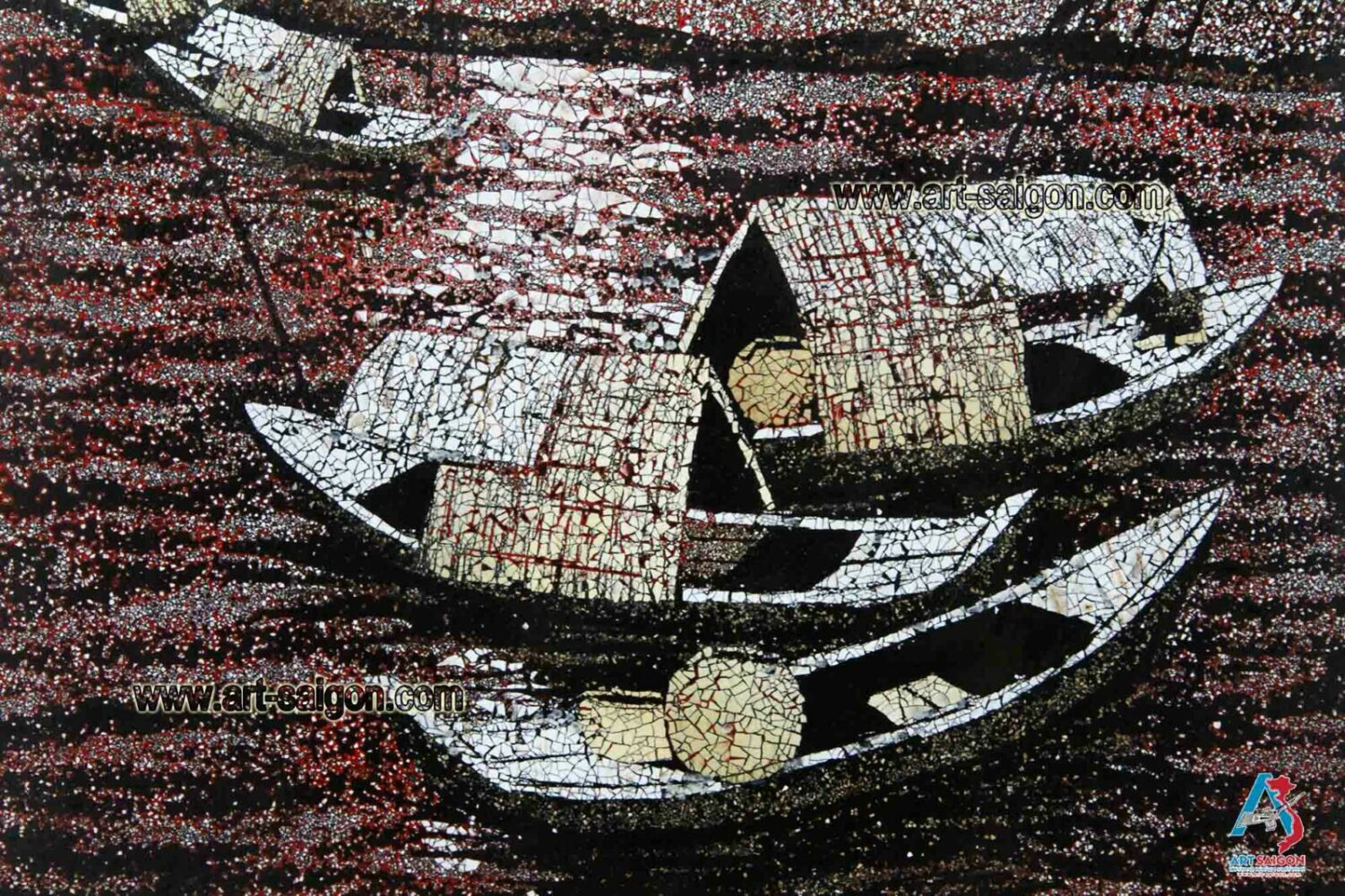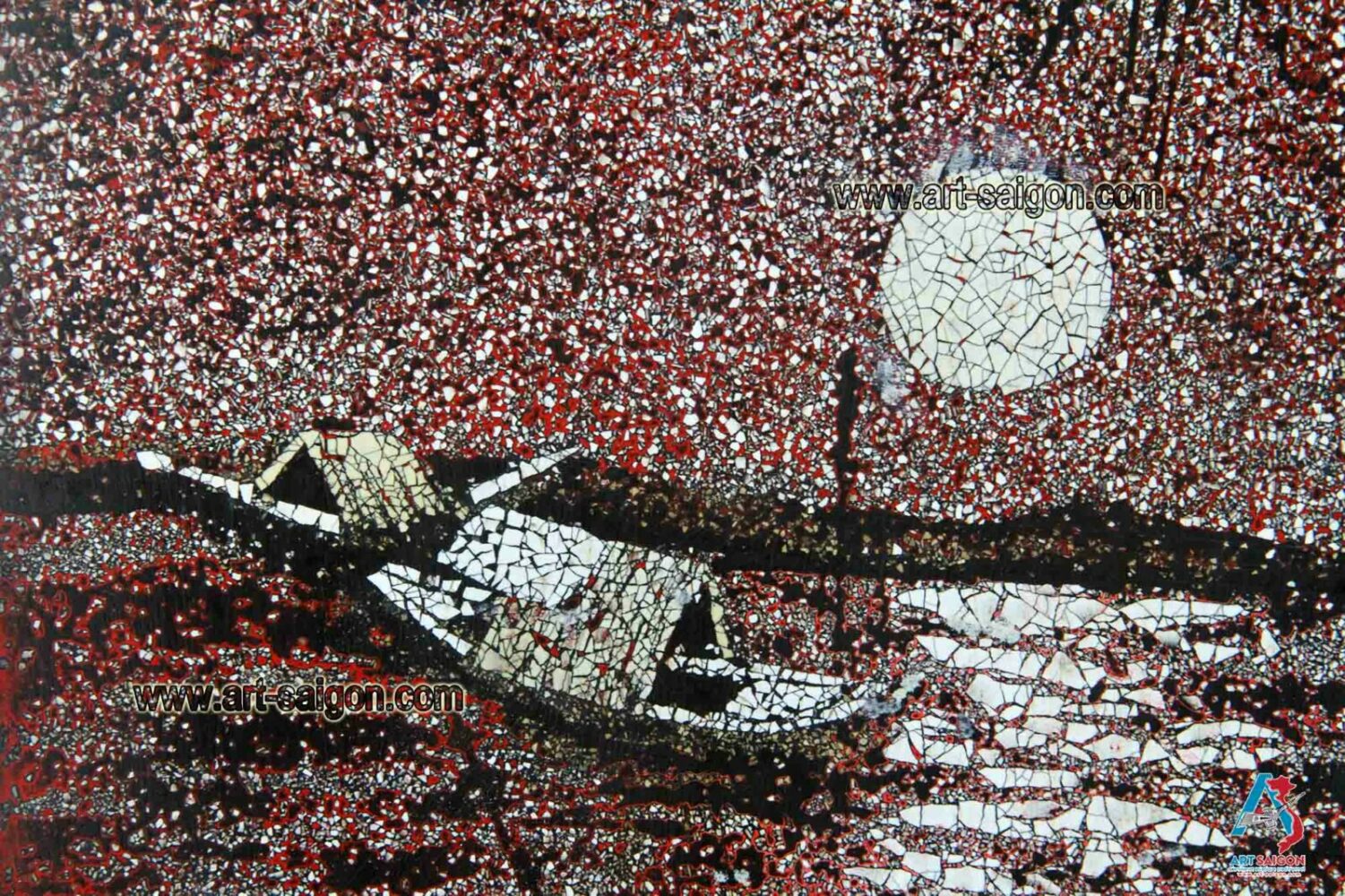 Ce joli tableau est fabriqué en bois laqué avec une couleur à dominante rouge corail. Ainsi, il représente une scène de la campagne du Vietnam avec ses paysans et son paysage peint à la main. De plus, ce tableau est fait entièrement avec des petites coquilles d’œuf cassées qui sont collées une par une. Enfin, il est fait entièrement à la main avec des techniques traditionnelles d’autrefois.