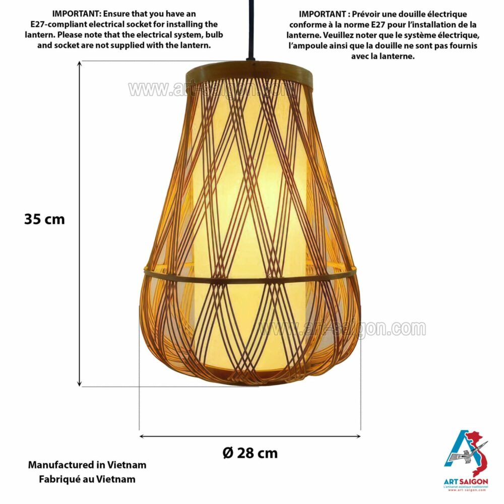 Lampion Abat-Jour en Bambou Ø28cm – Suspension Lanterne Artisanale du Vietnam (réf. S65-01)Disponibilité : 7 en stock