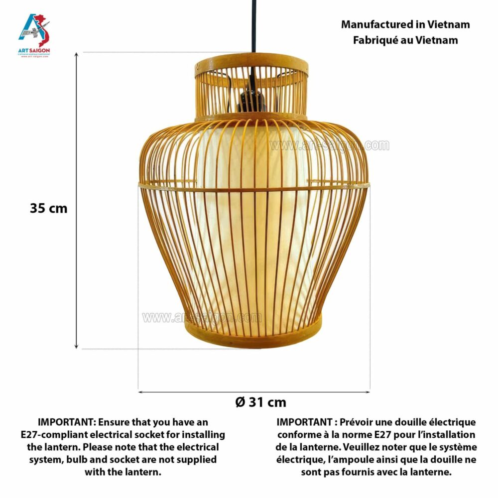 Lampion Abat-Jour en Bambou Ø31cm – Suspension Lanterne Artisanale du Vietnam (réf. S65-18)Disponibilité : 10 en stock