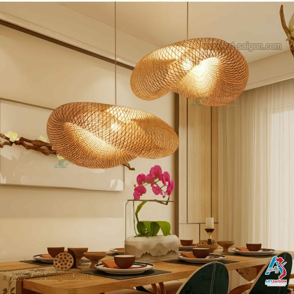 Nos lanternes sont tressées à partir de tiges de bambou naturel de haute qualité, sélectionnées avec soin. Les artisans utilisent des techniques ancestrales pour créer un tressage solide et esthétique. Le corps en bambou reçoit un vernis naturel qui protège contre l’humidité et la moisissure, tout en conservant un aspect brillant. Le travail 100 % tissé à la main offre un lustre rustique, une élégance simple et une combinaison harmonieuse entre matériaux naturels et finition contemporaine.