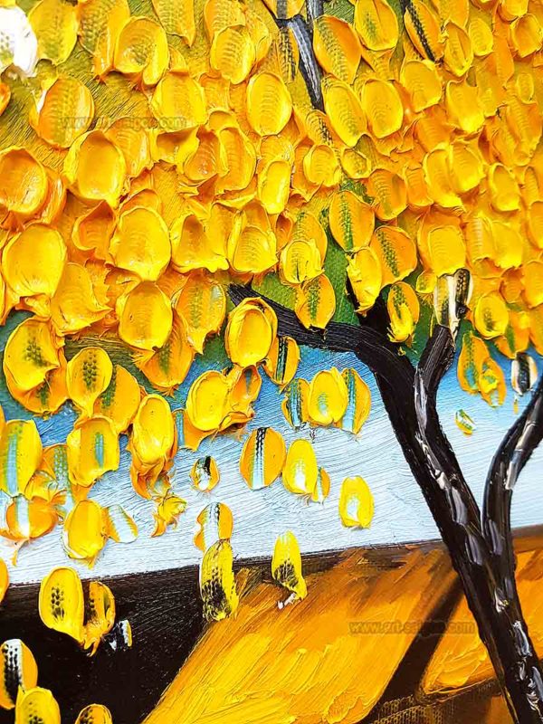 Cette peinture à l’huile est 100% réalisée à la main sur une toile en coton par des artistes expérimentés de la ville de Ho Chi Minh au Vietnam. Le tableau est peint au pinceau et parfois au couteau pour certains effets raffinés de reliefs.